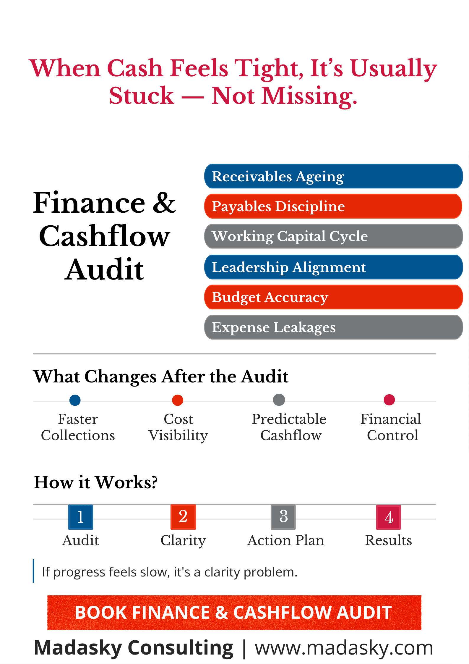 Outcome: A cashflow action plan that frees blocked money, eliminates waste, and strengthens financial control across the business.