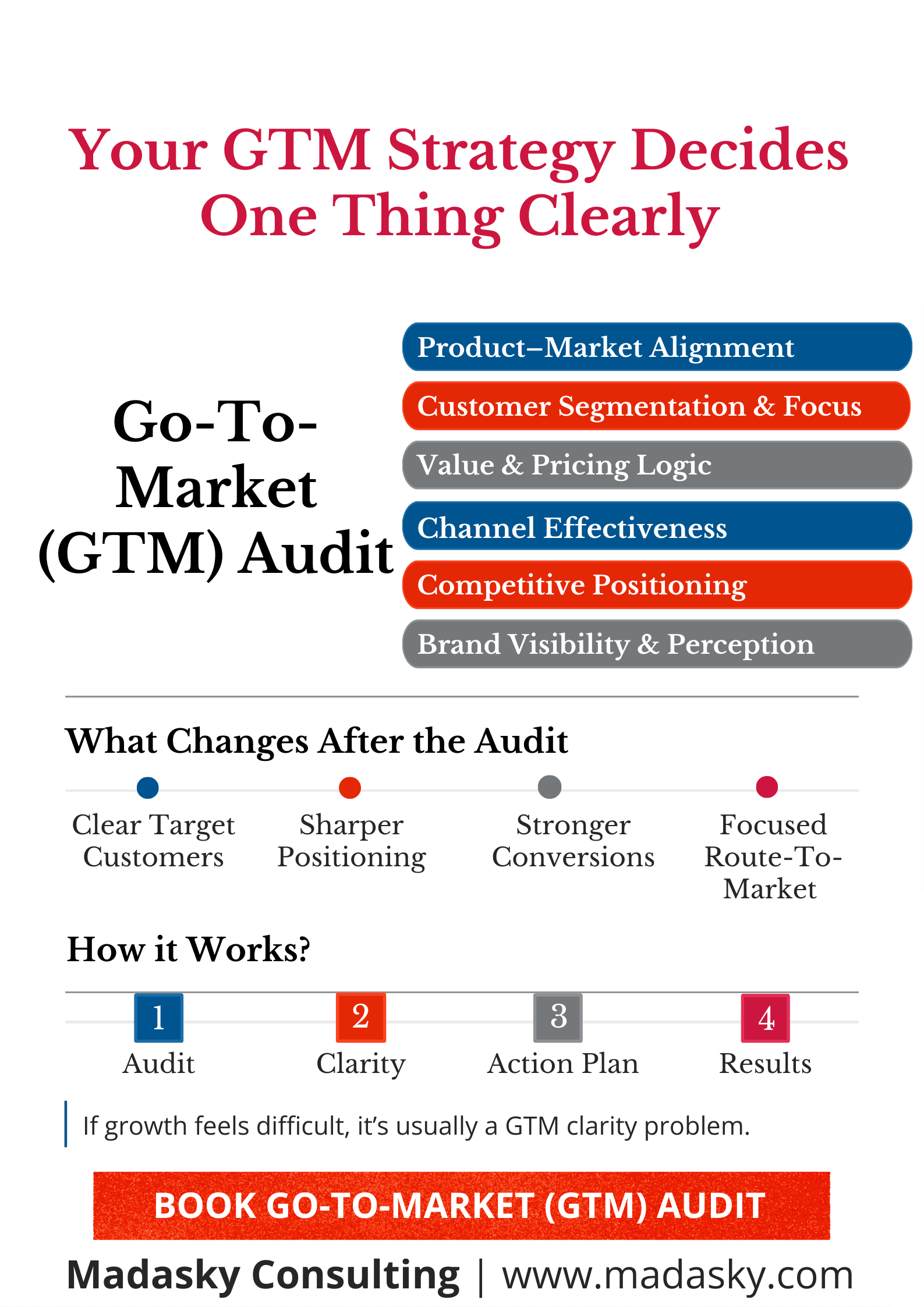 Outcome: A sharper GTM strategy with better positioning, clearer value messaging, and a stronger route-to-market that reduces dependence on price competition.