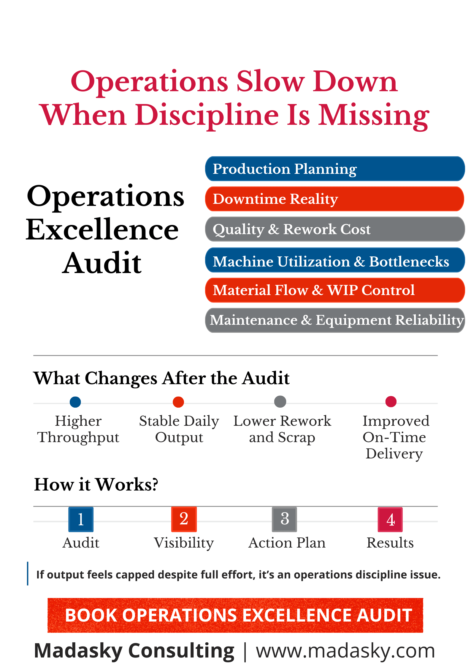 Outcome: A roadmap to lift output, reduce rework, and improve on-time delivery.
